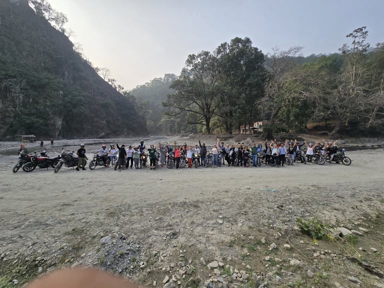 A perfect mix of spiritual ride, jungle exploration, river views and off-road adventure, this one-day motorcycle expedition takes riders deep into the wild landscapes of the Chilla Range, one of the most beautiful forest corridors of Rajaji Tiger Reserve, known for its dense sal forests, wildlife and scenic river landscapes.